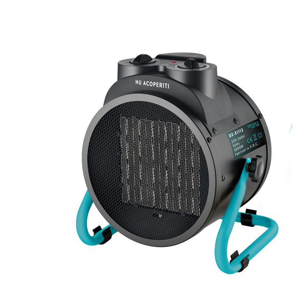 Aeroterma electrică ceramică Detoolz DZ-EI113, 25/1500/3000W, PTC este soluția ideală pentru încălzirea rapidă și eficientă a birourilor, atelierelor, spațiilor de depozitare, locuințelor sau serelor în sezonul rece. Datorită elementelor de încălzire ceramice PTC, aparatul oferă o temperatură constantă, consum redus și o durată de viață extinsă.