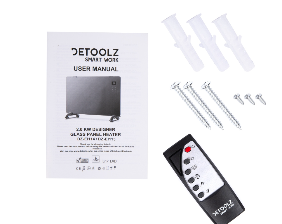 Continut colet convectorul electric 1000W/2000W, negru, WIFI, Detoolz DZ-EI115: