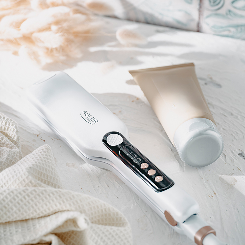 Placa de îndreptat părul Adler AD 2325 este un instrument esențial pentru coafarea zilnică a părului. Plăcile ceramice late, cu dimensiuni de 4,1 cm x 10,6 cm, asigură o distribuție uniformă a căldurii, minimizând riscul de deteriorare a părului. Cu 7 setări de temperatură, variind între 150°C și 210°C, placa este potrivită pentru toate tipurile de păr, oferind rezultate optime de coafare.