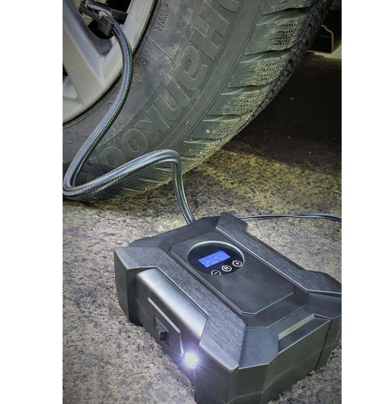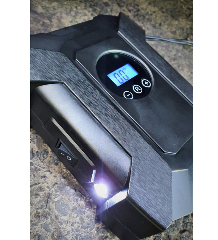 Compact si cu un design modern, cu functionare automatizata, include si o lampa de lucru cu LED. Este prevazut cu un compartiment pentru depozitarea cablului si furtunului, precum si cu mai multe accesorii adaptoare pentru diverse articole gonflabile (adaptor valva Presta/Schraeder, ac, etc).