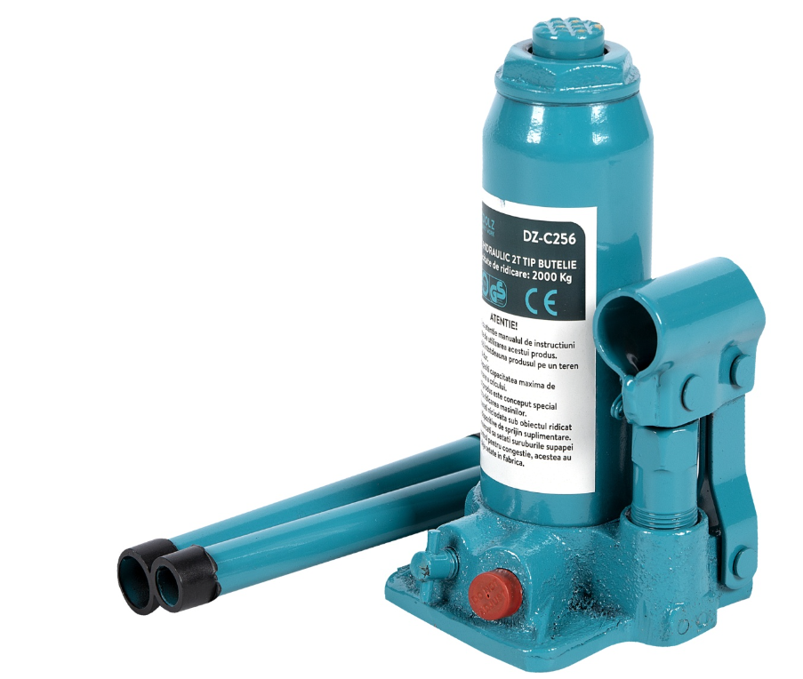 Cricul hidraulic auto 2T de tip butelie, Detoolz DZ-C256 poate ridica vehicule foarte grele, insa trebuie manipulat conform instructiunilor pentru a preveni accidentele.