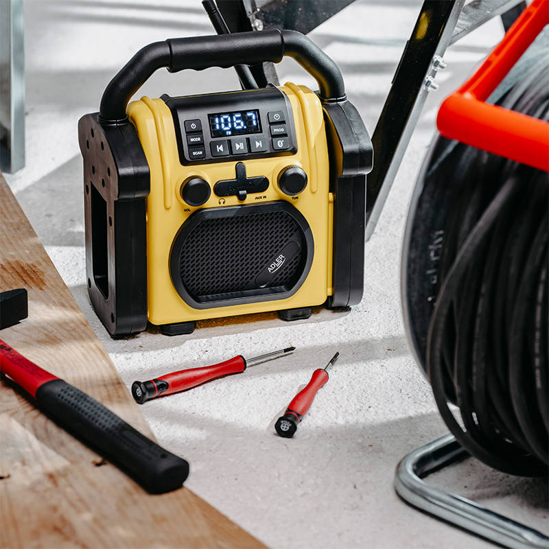 Radioul de construcție Adler AD 1911 combină durabilitatea robustă cu caracteristici moderne precum Bluetooth și intrare auxiliară, asigurând performanță fiabilă în medii provocatoare. Indiferent dacă aveți nevoie de muzică la serviciu sau în timpul aventurilor în aer liber, acest radio este construit pentru a vă menține conectat și distra.