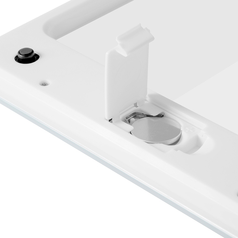 Corpul cantarului este echipat cu sticla securizata securizata de 0,4 cm inaltime. Este astfel rezistent la uzura rapida a suprafetei in timpul utilizarii pe termen lung. Culoarea scalei nu se schimbă nici după ani, iar nuanța rămâne aceeași. În plus, suprafața netedă este ușor de întreținut și de curățat de reziduurile alimentare sau lichidele vărsate.