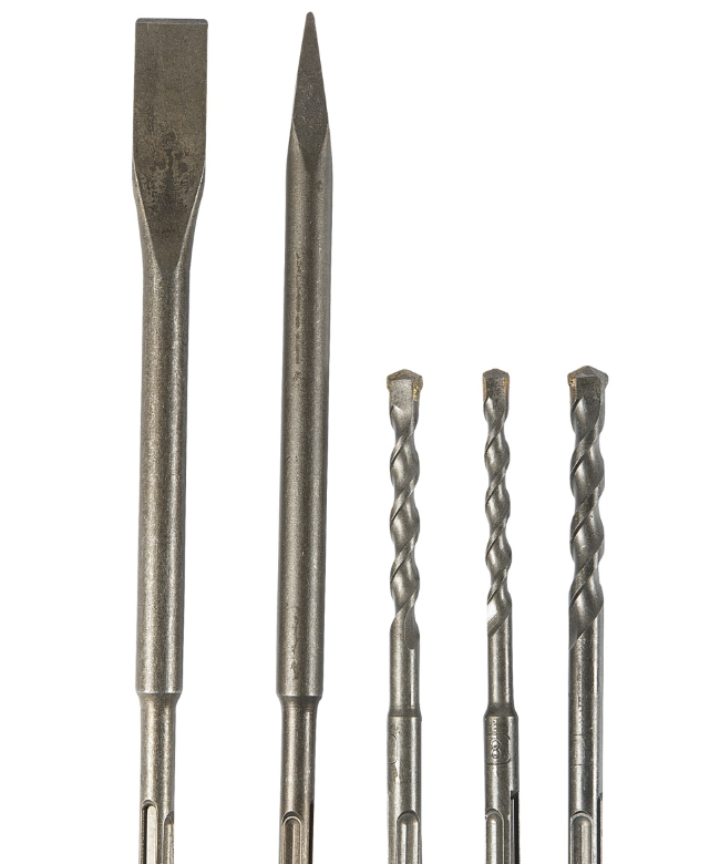 • Ciocanul rotopercutor dispune de mandrina interschimbabila pentru trecerea rapida de la gaurirea cu percutie in beton la gaurirea fara percutie in lemn sau metal folosind o mandrina SDS