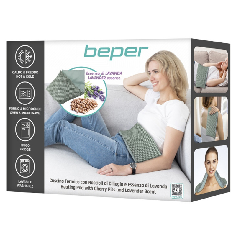 Perna, acoperită cu bumbac și împărțită în patru secțiuni, permite o distribuție uniformă a căldurii pentru un efect de încălzire uniform asupra corpului. După încălzirea în cuptorul cu microunde sau cuptor, conținutul de sâmburi de cireșe eliberează căldură, ameliorând durerea și rigiditatea musculară. Rapidă și ușor de utilizat, cu o husă detașabilă din bumbac pentru spălare. Esența calmantă de lavandă este eliberată atunci când perna este încălzită.