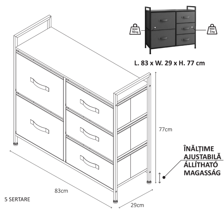 COMODĂ TEXTILĂ CU 5 SERTARE