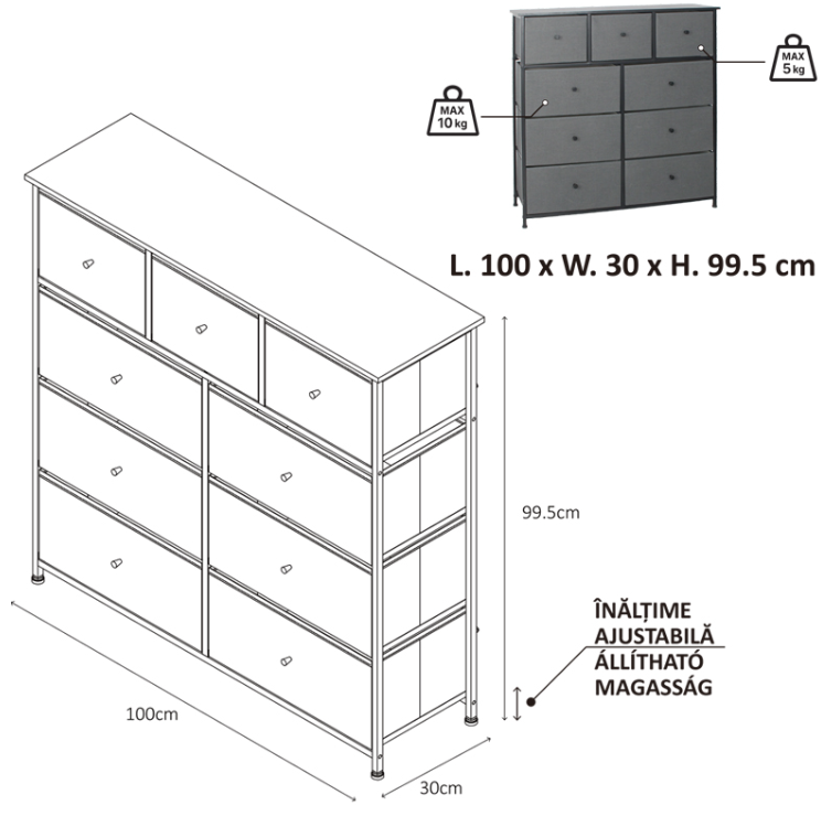 COMODA 9 SERTARE TEXTILE / 100X30X99CM - ANTRACIT/NEGRU