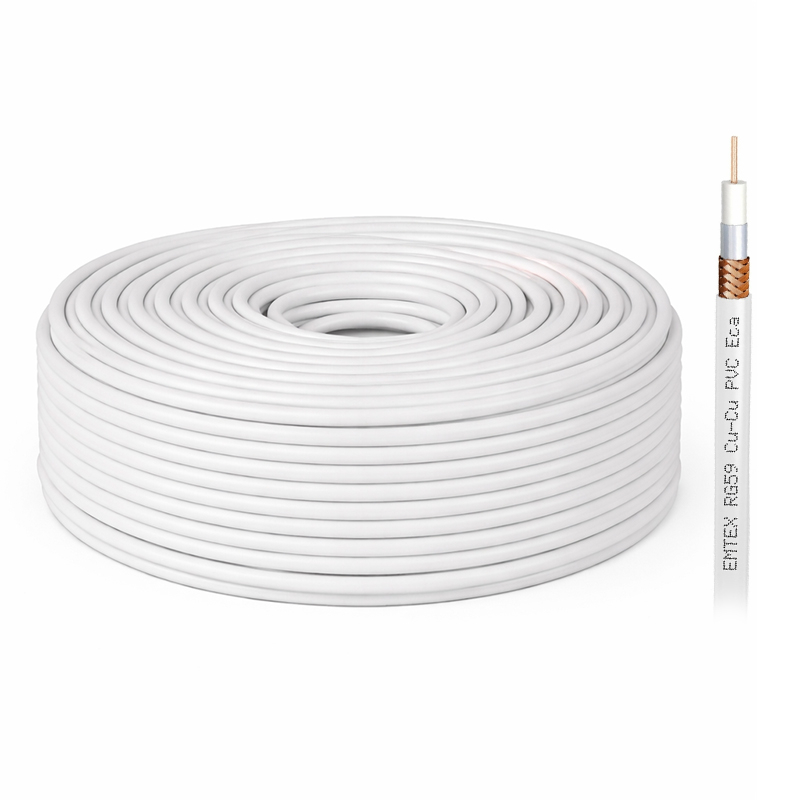 Cablu coaxial din Cu, RG59, 75 ohm, rola 100 m, greutate 3 kg