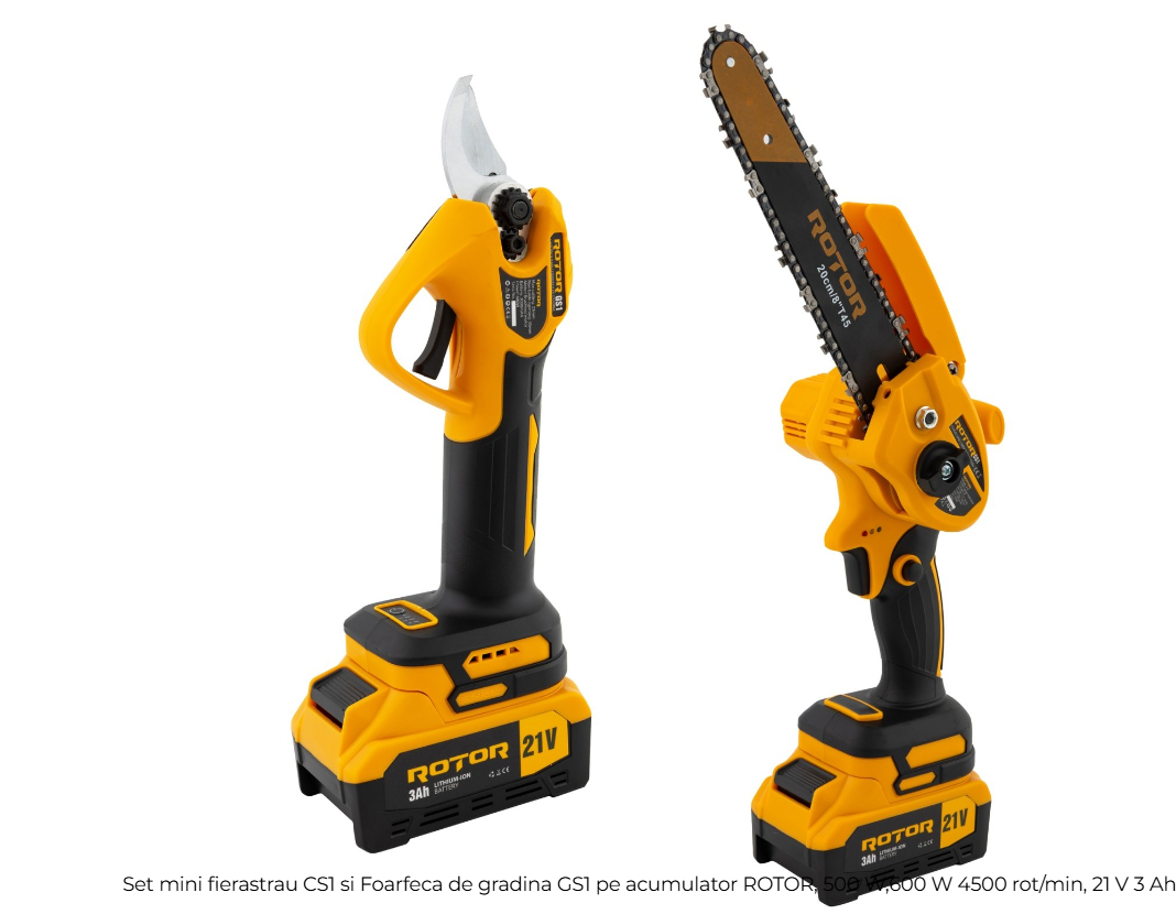 Set Mini-Fierăstrău CS1 și Foarfecă de Grădină GS1 pe Acumulator