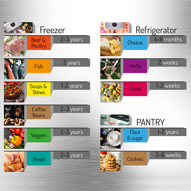 Puteti impacheta rapid carne rece si branzeturi, resturile de cina, fructe sau legume pentru congelare si puteti pregati mancaruri folosind metoda sous-vide.