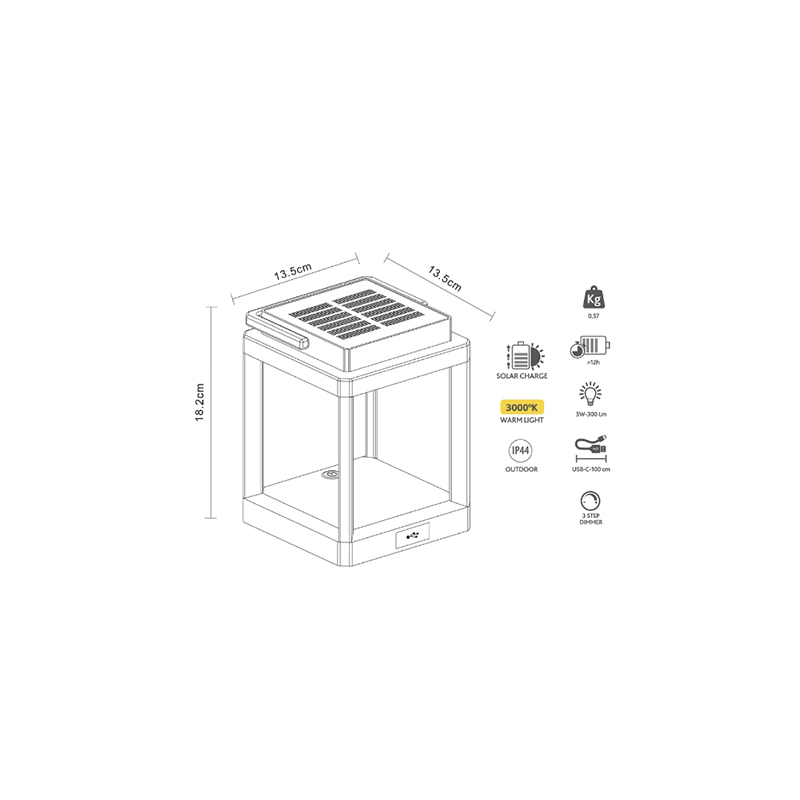 SUNNY este o lampă de masă reîncărcabilă, caracterizată printr-o lumină superioară care permite utilizatorului și transportatorului să se deplaseze indiferent de situație.