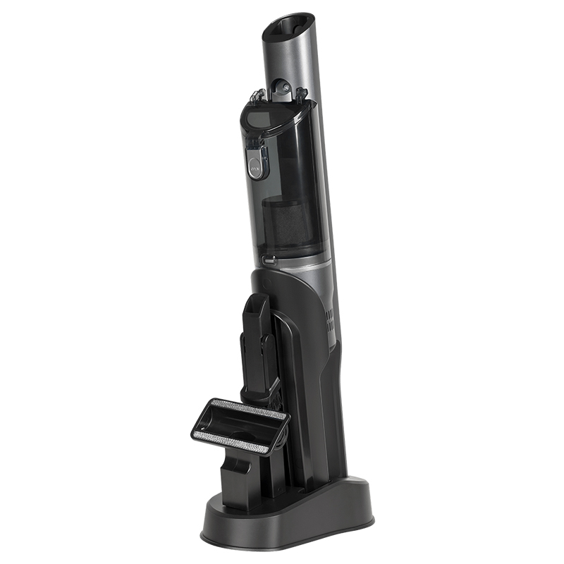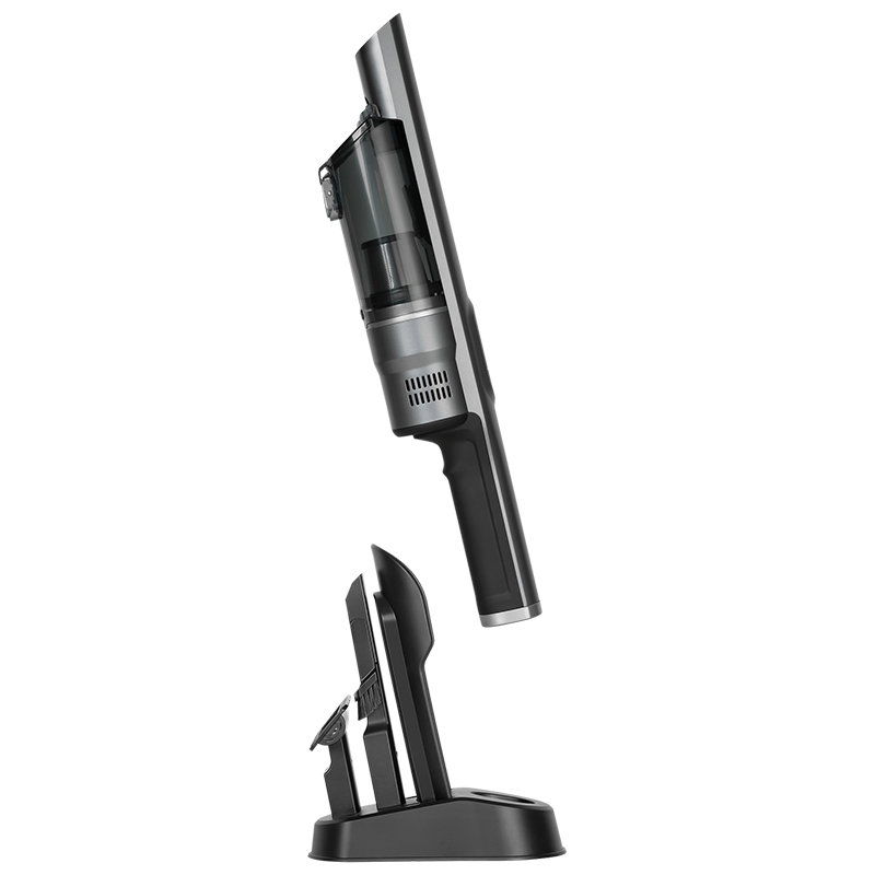 Inclus: bază de încărcare, duză pentru spatii inguste 2 în 1, duză pentru podea, suport