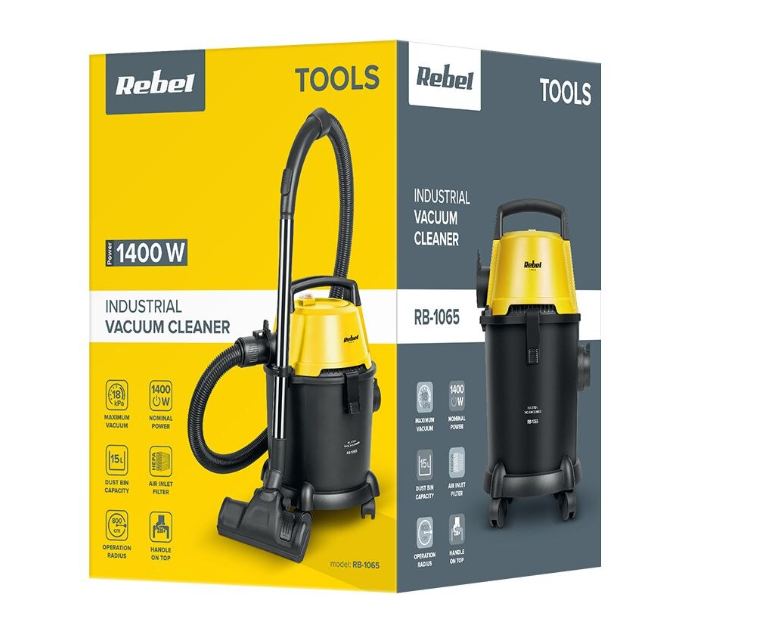 Aspiratorul industrial Rebel RB-1065 este soluția ideală pentru garaj, atelier, gospodărie sau mașină, oferind o putere de 1400 W și funcție 2 în 1 pentru aspirare uscată și umedă. Cu o forță de aspirare de 18 kPa și furtun cu diametru de 41 mm, acest model poate curăța eficient praf fin, resturi mari, rumeguș, pământ sau lichide vărsate.