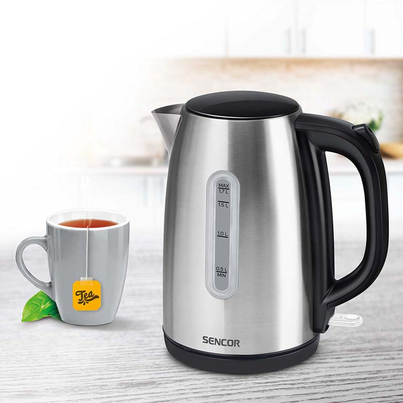 Pentru siguranță, fierbătorul este prevăzut cu protecție la supraîncălzire atunci când este pornit fără apă, un indicator luminos de alimentare, un capac de siguranță și o funcție automată de oprire după atingerea punctului de fierbere sau atunci când este detașat de la bază.