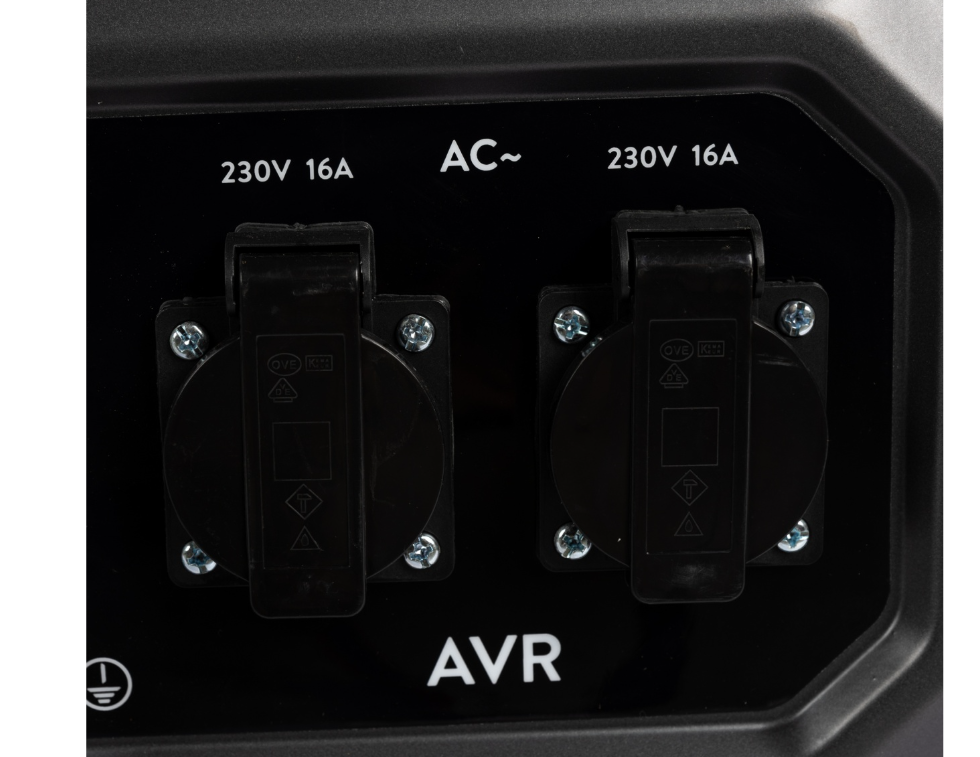 de tensiune alternativa de 230Vca sau tensiune continua 12Vcc. In cazul aparatelor casnice va rugam sa verificati compatibilitatea pe baza datelor producatorului referitoare la puterea aparatelor conectate sa fie sub puterea maxima dezoltata de generator.
