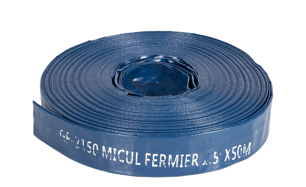 Furtunul plat din PVC, diametru 1,5", lungime 50 m, Micul Fermier GF-2150 poate fi folosit in agricultura, in industrie, la irigatii, la transortul apelor reziduale, refulari.