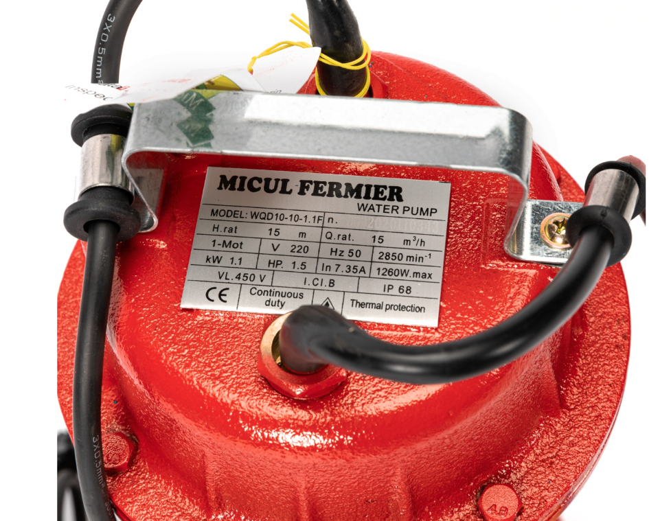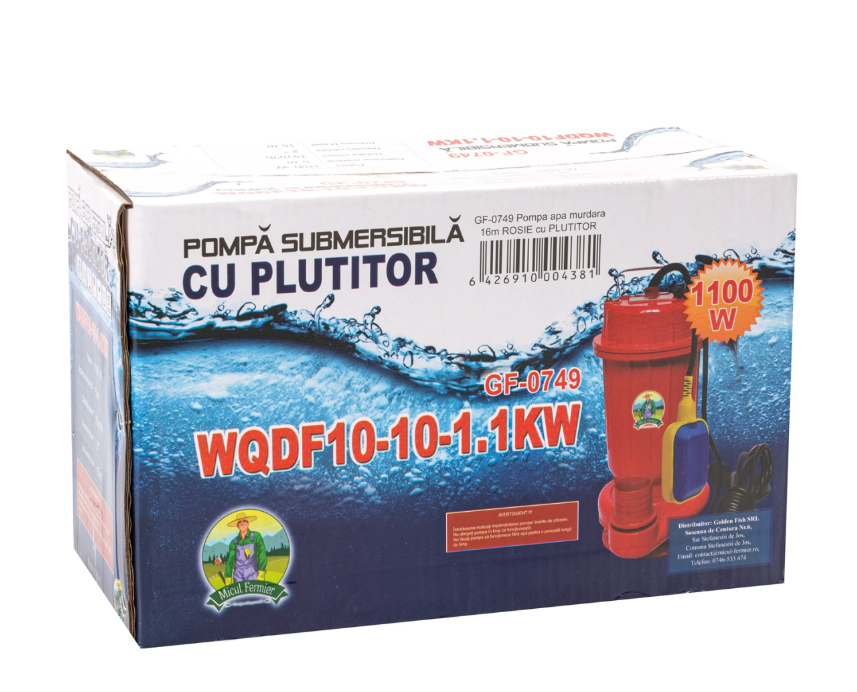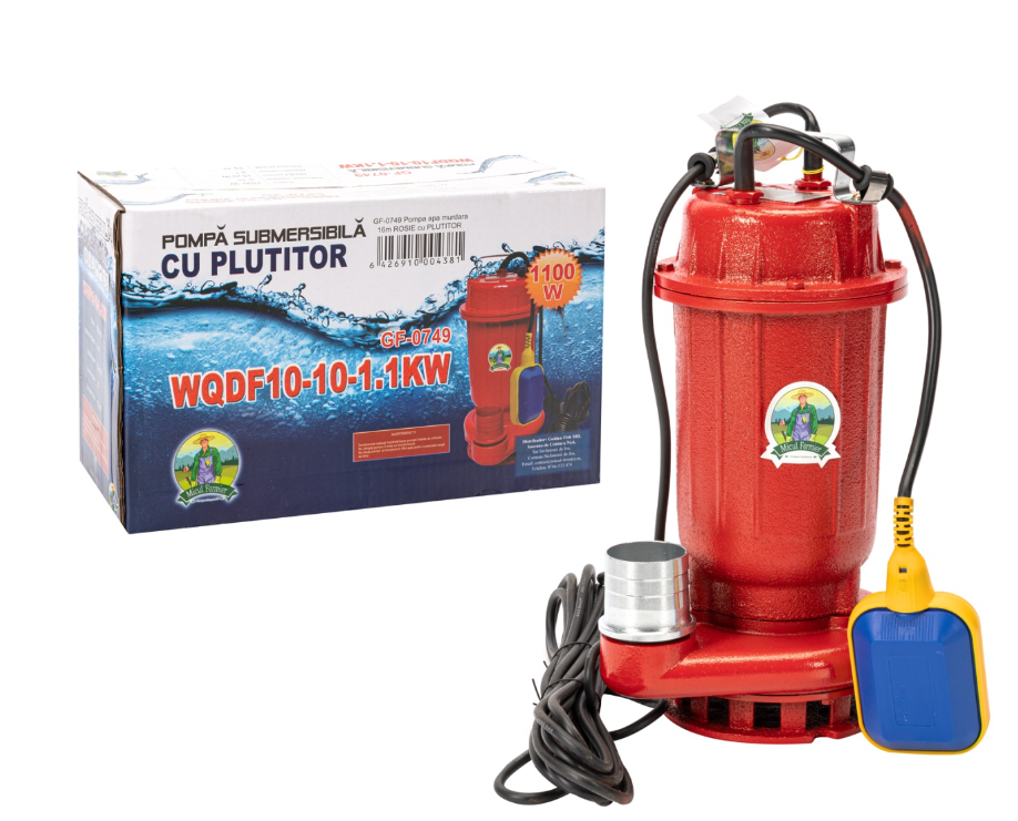Pompa submersibila pentru apa murdara, WQD10-10-1.1, 16m, ROSIE cu plutitor, Micul Fermier GF-0749 poate fi folosita, atat in mediu urban cat si in mediu rural, pentru ridicarea apei murdare pana la 15m in instalatii fixe sau temporare pentru: vidanjare fose septice/ instalatii de tratare a apei/ ape noroioase, pluviale sau reziduale/ scoaterea apei din beci sau puturi/ golirea puturilor de decantare.