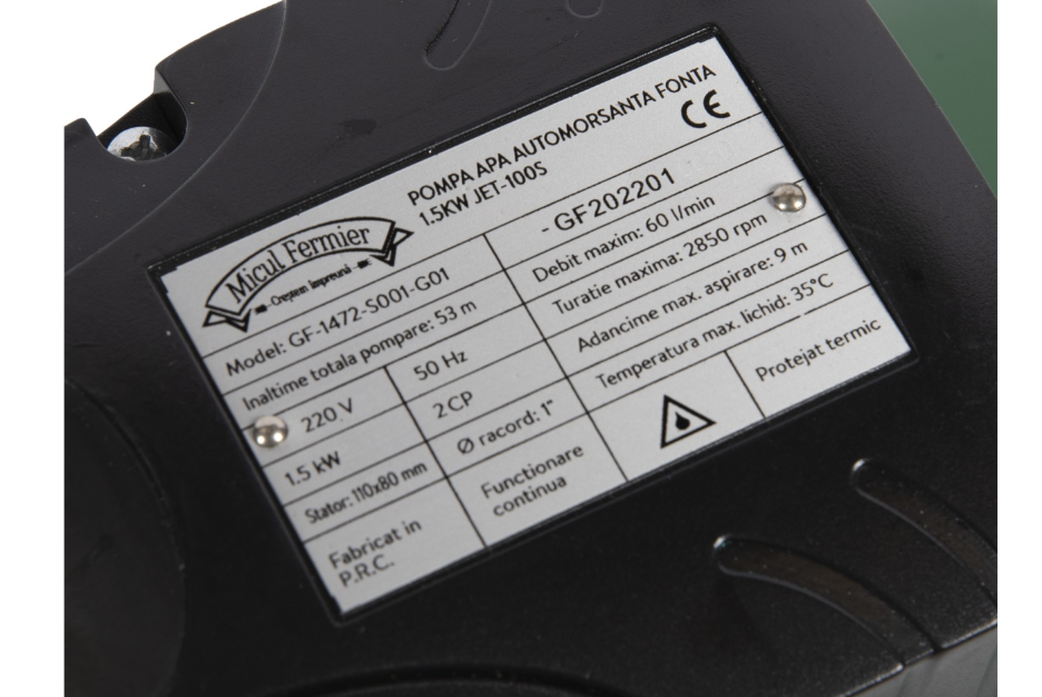 • Pompa de suprafata tip JET este concepută pentru apă curată, la o temperatură maximă a fluidului de 35°C.