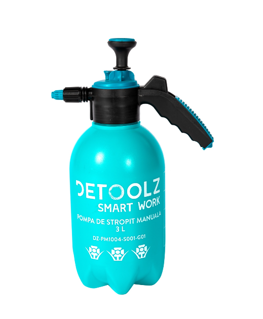 Pompa de stropit manuala, Detoolz 3L este un produs destinat atat uzului casnic, cat si stropirii gradinii dumneavoastra. Cu aceasta pompa manuala puteti actiona la stropirea plantelor, copacilor sau a vitei de vie, putand adauga orice fel de pesticid sau insecticid. Pompa de stropit manuala mai poate fi utilizata cu succes si la operatiuni de deratizare in spatii publice, hoteluri, magazine, apartamente, etc.
