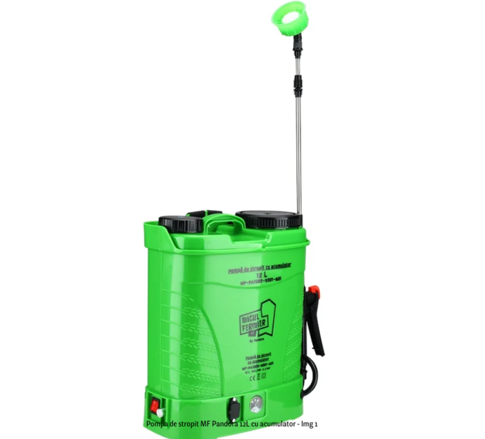Eficiență și ușurință în aplicarea tratamentelor pentru plante! Pompa de stropit MF Pandora MF-PA1005-S001-G01 este soluția ideală pentru combaterea dăunătorilor, aplicarea îngrășămintelor lichide și dezinfectarea suprafețelor. Cu o capacitate de 12L și un acumulator de 12V/8Ah, asigură pulverizare uniformă și autonomie extinsă.