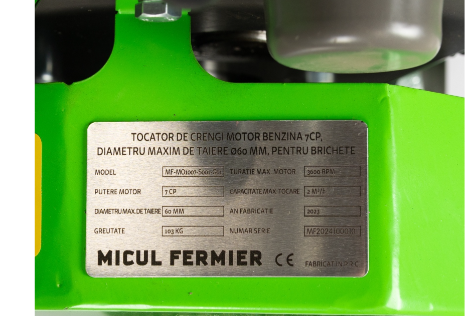Tocator de crengi Micul Fermier, motor benzina 7 CP, 60 mm diametru maxim de taiere, pentru brichete
