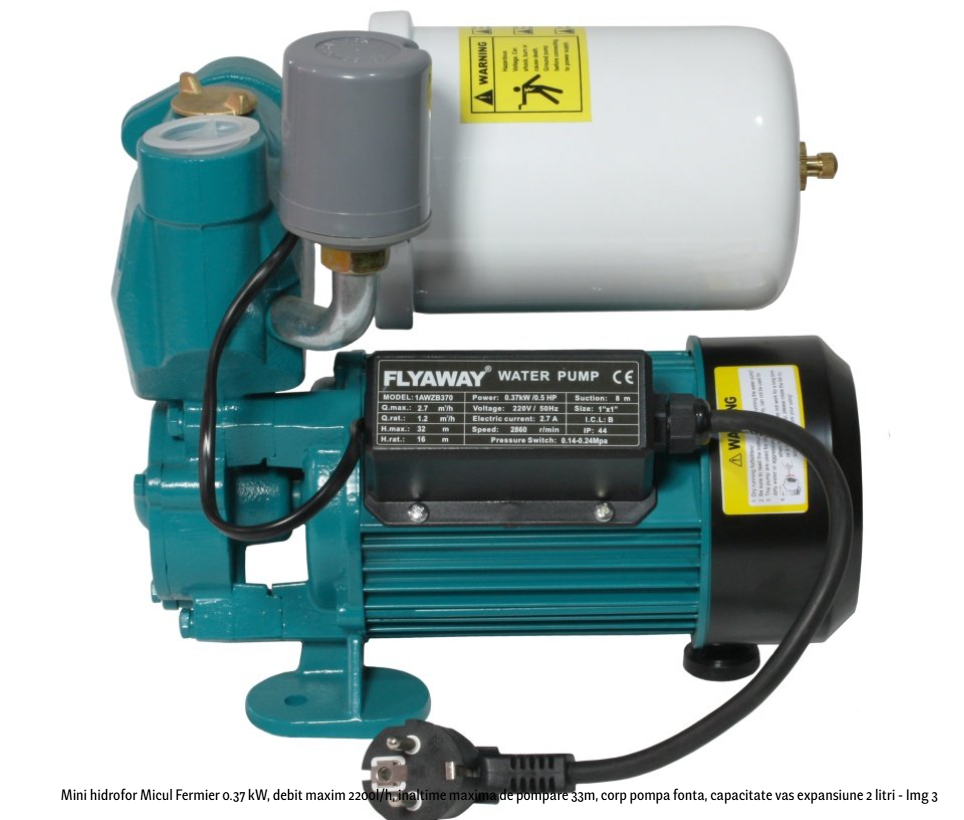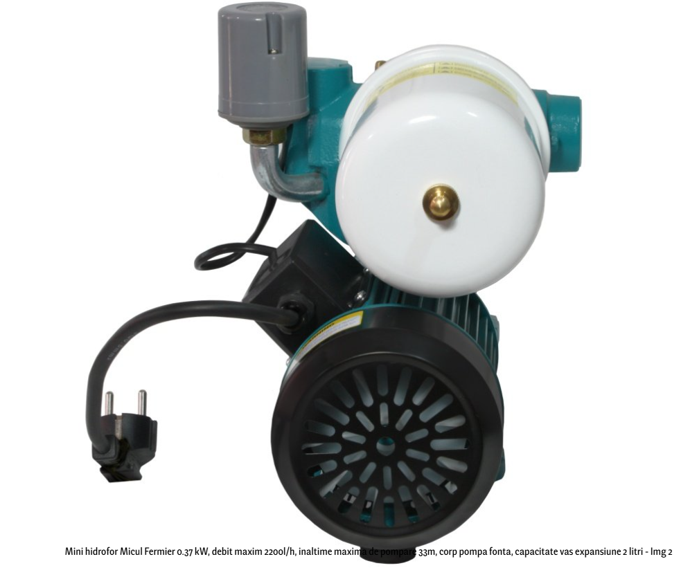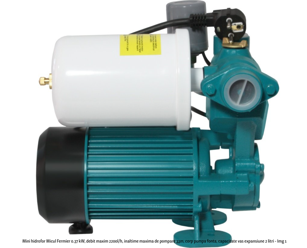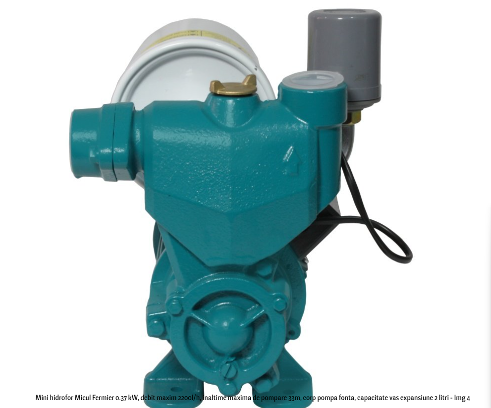 Datorita dimensiunii foarte mici hidroforul pentru presiune, cu o putere de 0.37 kw si un rezervor de 2 L este recomandat pentru a creste presiunea in gospodarie fiind foarte usor de montat chiar si sub chiuveta sau intr-un loc mic.