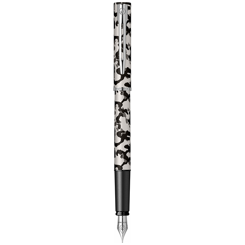 Penita din otel inoxidabil placata cu crom, avand in varf pastila de iridiu. Stiloul functioneaza cu cartuse Waterman sau convertor.