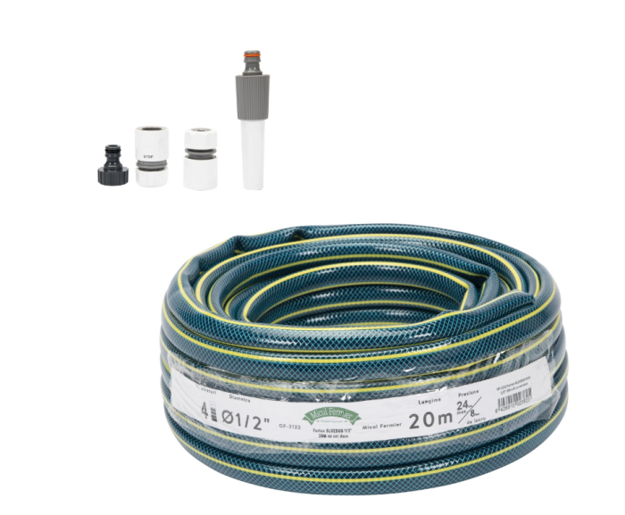 Furtun de gradina cu set duze, Bluebos Plus, diametru 1/2", 20 metri, produs in UE, Micul Fermier GF-2122