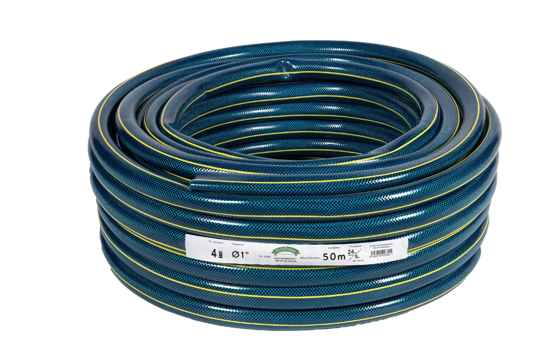 Furtun de gradina cu insertie, Bluebos Plus, diametru 1", 50 metri, 4 straturi, clasa 3 rezistenta, produs in UE, Micul Fermier GF-2120