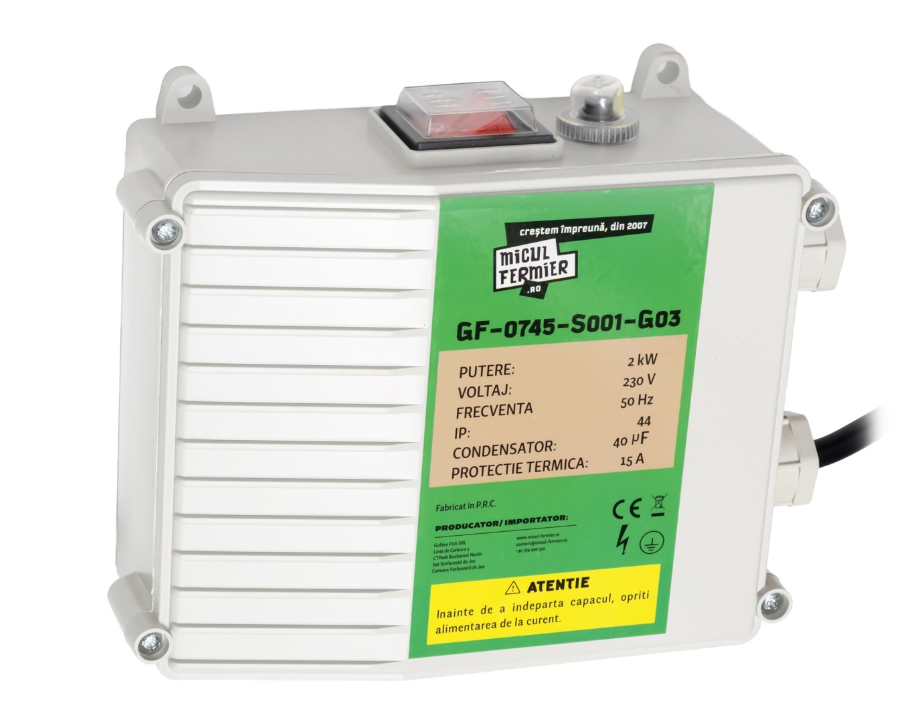 Pompa submersibilă Micul Fermier GF-0745-S001-G03 este proiectată pentru extracția eficientă a apei curate din puțuri de mare adâncime, având o putere de 2kW și un debit maxim de 3000 l/h, cu o înălțime de pompare de până la 100 metri. Este echipată cu două turbine performante care asigură un debit hidraulic ridicat și o eficiență energetică superioară.