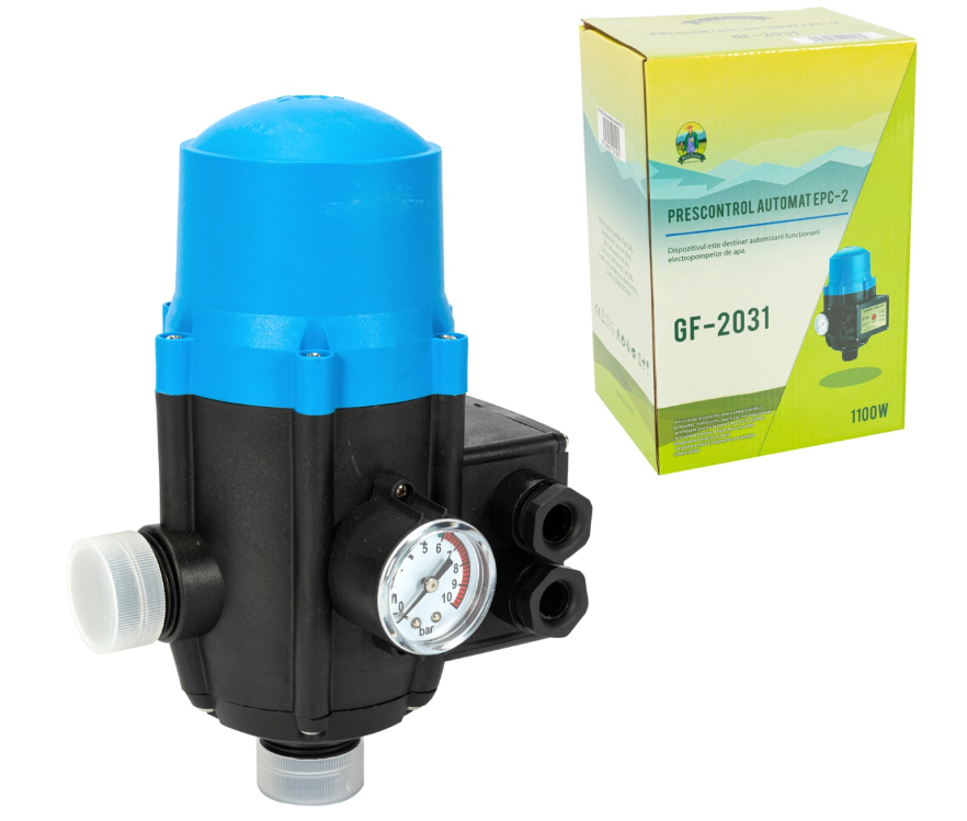 Prescontrol automat EPC-2, Micul Fermier GF-2031, se utilizeaza pentru controlul optim al pompelor de uz casnic din instalatiile de alimentare cu apa curata.