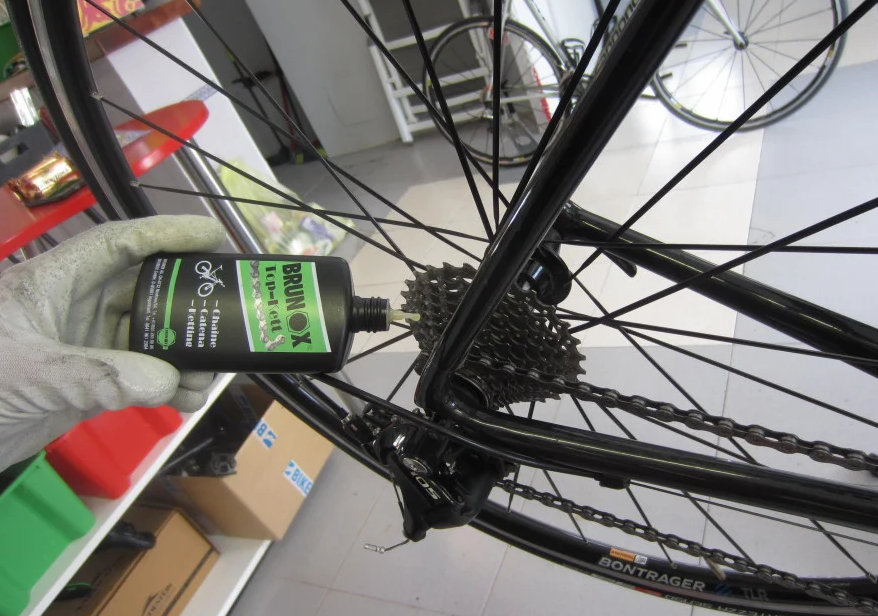 Se pulverizeaza putin BRUNOX® Top-Kett pe lant. Pelicula creata nu este inlaturata de ploaie, ninsoare sau vant, oferind protectie indelungata anti-coroziva. Rezista la temperaturi cuprinse intre -41°C si 150°C, avand o vascozitate crescuta. Pelicula nu se intareste, este compacta, anti-coroziva si confera o buna lubrifiere, formand o pelicula cu acoperire de 100%, inclusiv in jurul marginilor.