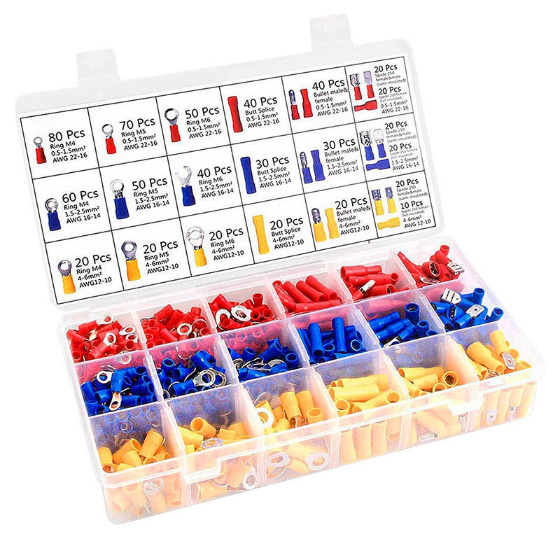 Diferiți conectori de sertizare izolați, furnizați în ambalaje rezistente din plastic flexibil