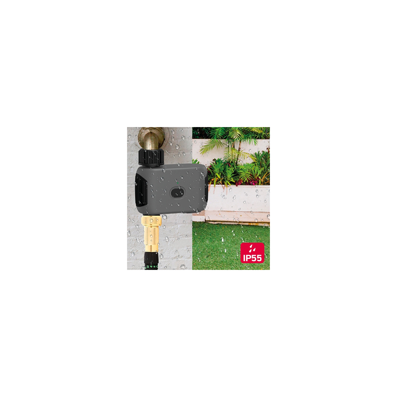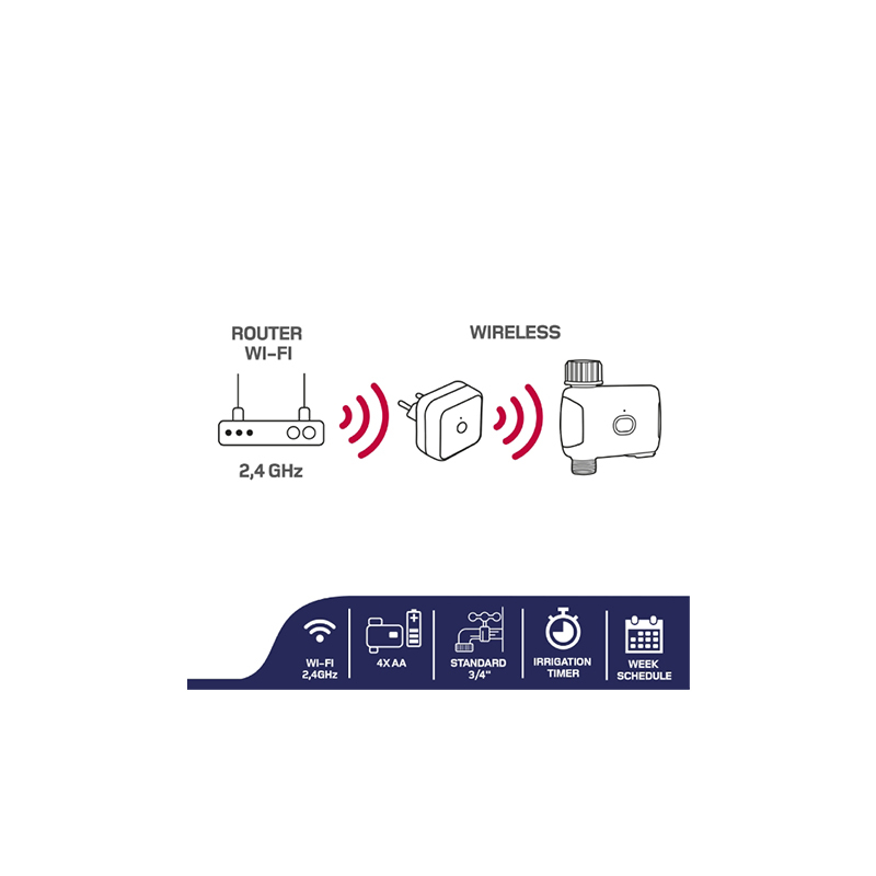 Programator inteligent de grădină cu baterie și gateway WI-FI. Instalare rapidă și ușoară datorită intrării standard de 3/4". Aplicația HeySmart vă permite să gestionați programul săptămânal de irigare de pe smartphone sau prin intermediul asistentului vocal. Datorită cloud-ului HeySmart, puteți amâna irigarea în funcție de vreme.