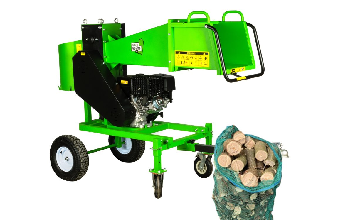 Tocator crengi Micul Fermier, motor benzina 18CP, diametru maxim de taiere Ø120mm, cu carlig de remorcare, pentru brichete