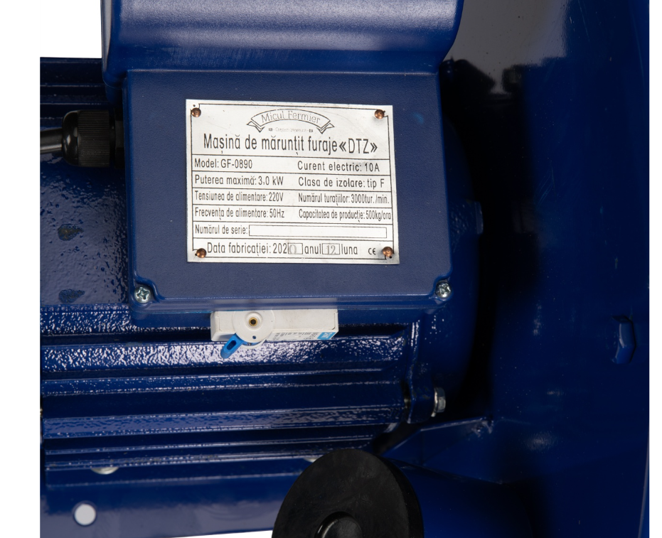 Putere, eficiență și versatilitate! Moara electrică cu ciocănele Micul Fermier GF-0890 este un echipament de uz gospodăresc destinat măcinării cerealelor, știuleților de porumb întregi, fânului și paielor utilizate la întreținerea animalelor. Cu un motor puternic de 3kW, o productivitate de până la 500 kg/h și un sistem de ventilație performant, această moară este ideală pentru ferme mici și gospodării.